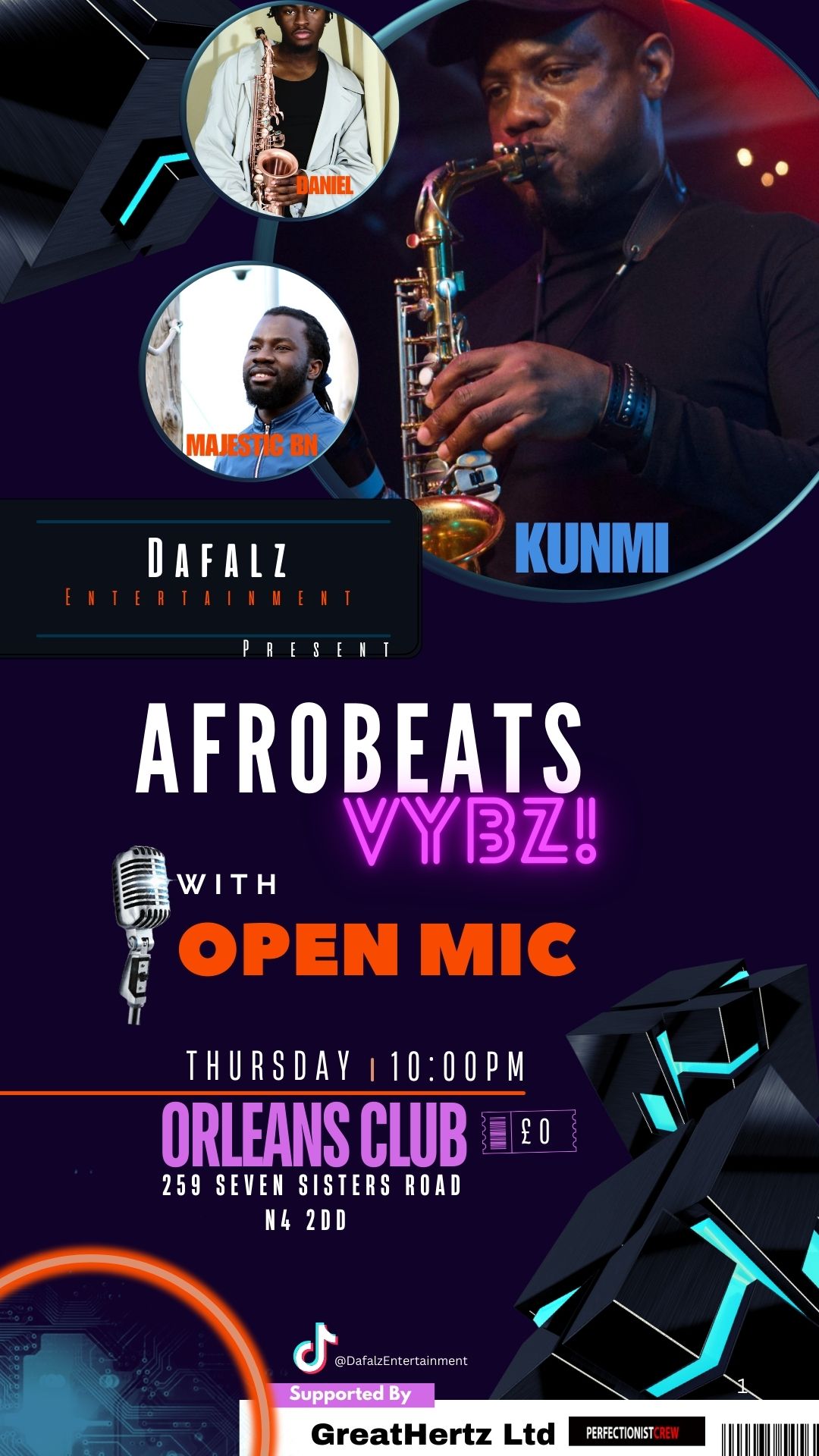 Jamming session will be in and around the time until 1:30am and DjH00k round up the night with Afrobeats Vybz.