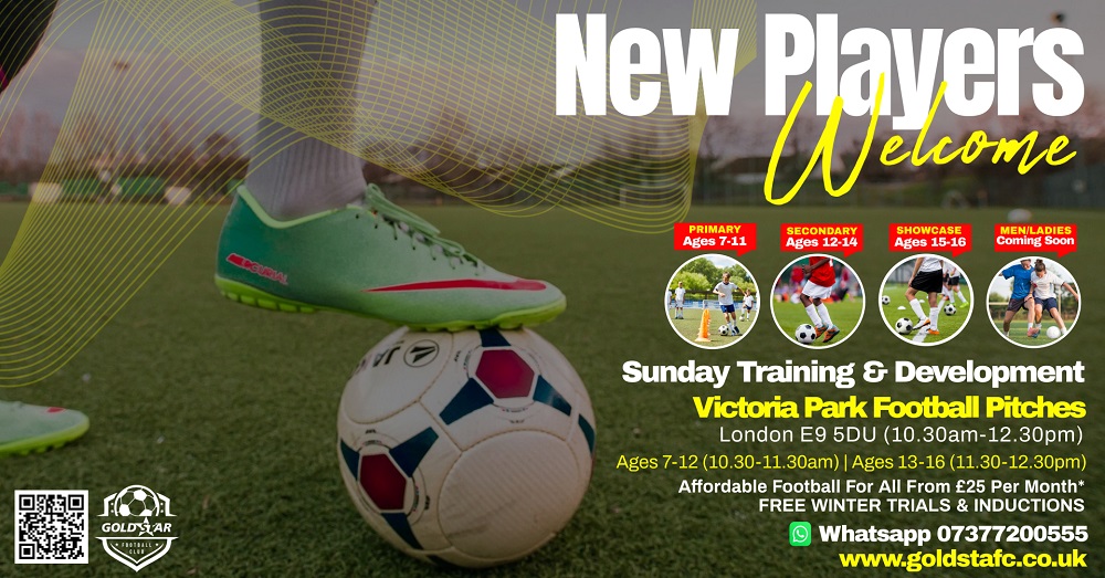 As part of our commitment to making football accessible to everyone, we are hosting free winter trials and inductions every Sunday at Victoria Park Football Pitches, London E9 5DU. Sessions are scheduled from 10:30 am to 11:30 am for players under 8-12 years old, and from 11:30 am to 12:30 pm for those under 13-16 years old. Don’t miss this chance to become part of a supportive and dynamic football community.