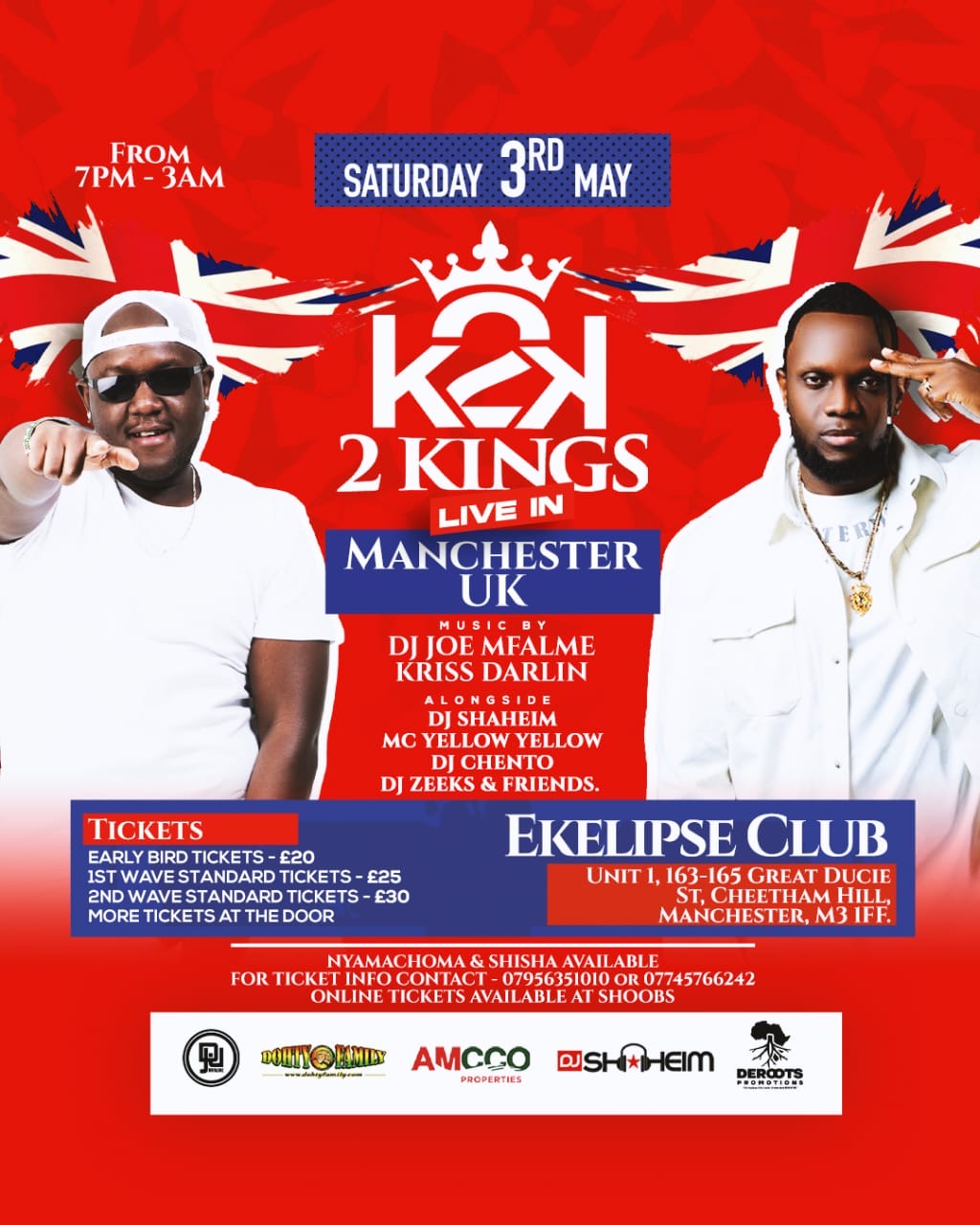 2 Kings UK tour for the first time in MANCHESTER - Saturday 3rd May featuring Dj Joe Mfalme & Kriss Darlin alongside top UK entertainers. Not to be missed.