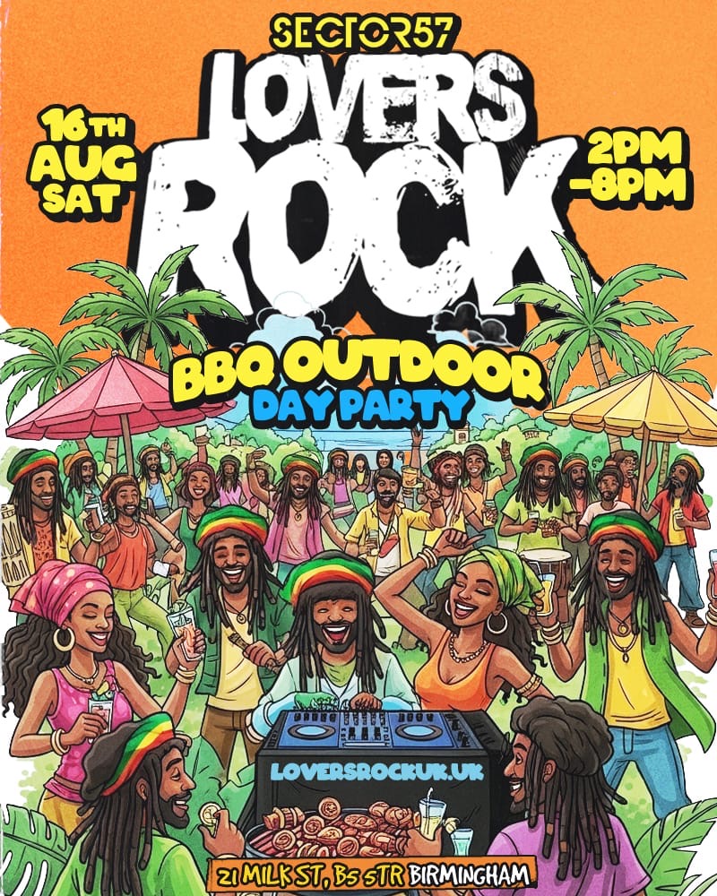 Join us on Saturday 16th August at Sector 57 in Birmingham for an unforgettable day filled with flavours, rhythms, and good energy. We're bringing that classic island feel to the heart of the city with mouth-watering jerk, curry goat, and vegan delights straight off the grill.