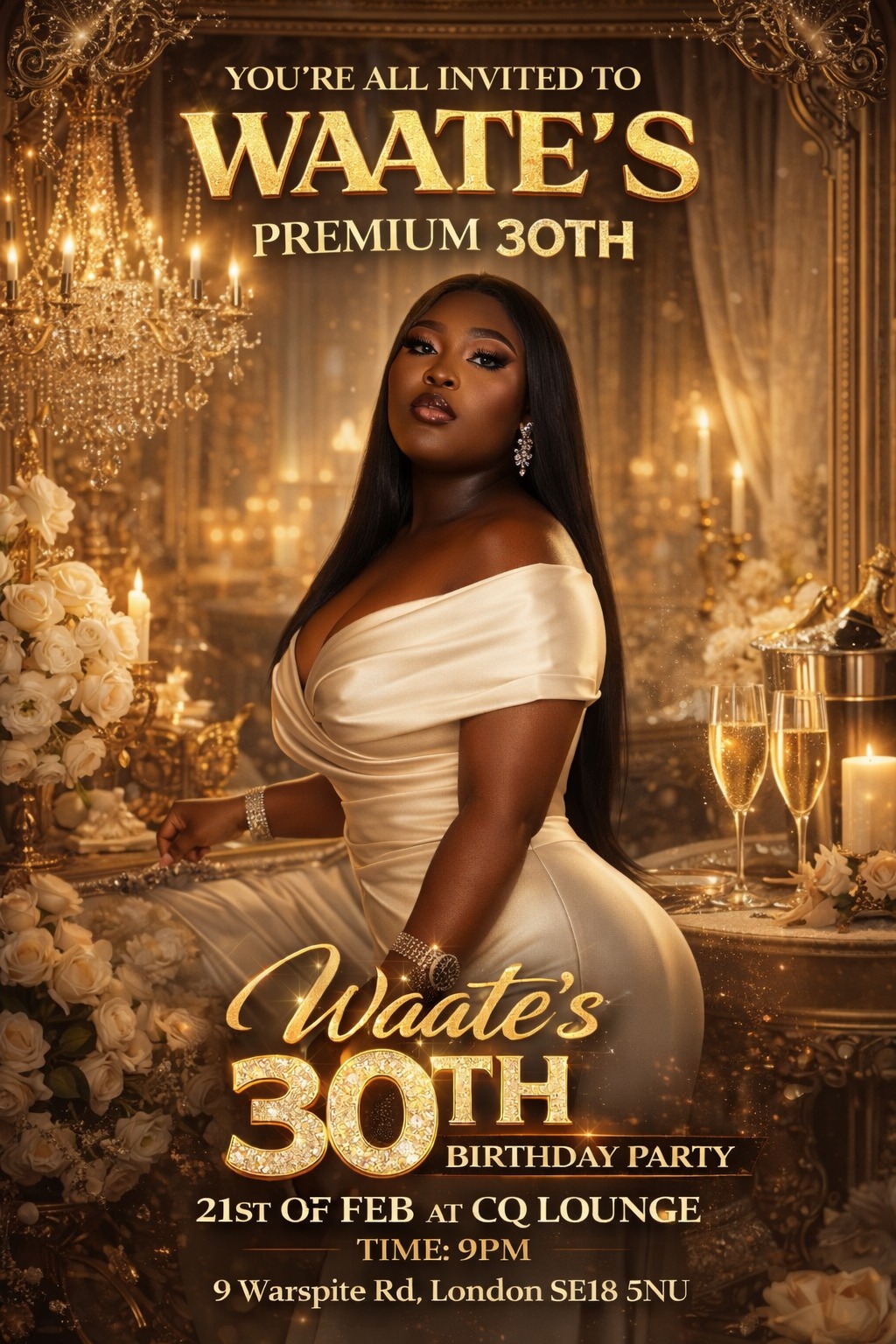 WAATE’S PREMIUM 30TH BIRTHDAY PARTY SATURDAY 21ST FEBRUARY CQ Lounge WARSPITE ROAD SE18 5NU R&B, HIP-HOP, AFRO-BEATS, AMAPIANO, BASHMENT, OLD SKOOL & CLUB CLASSICS Dress code: BLAC...