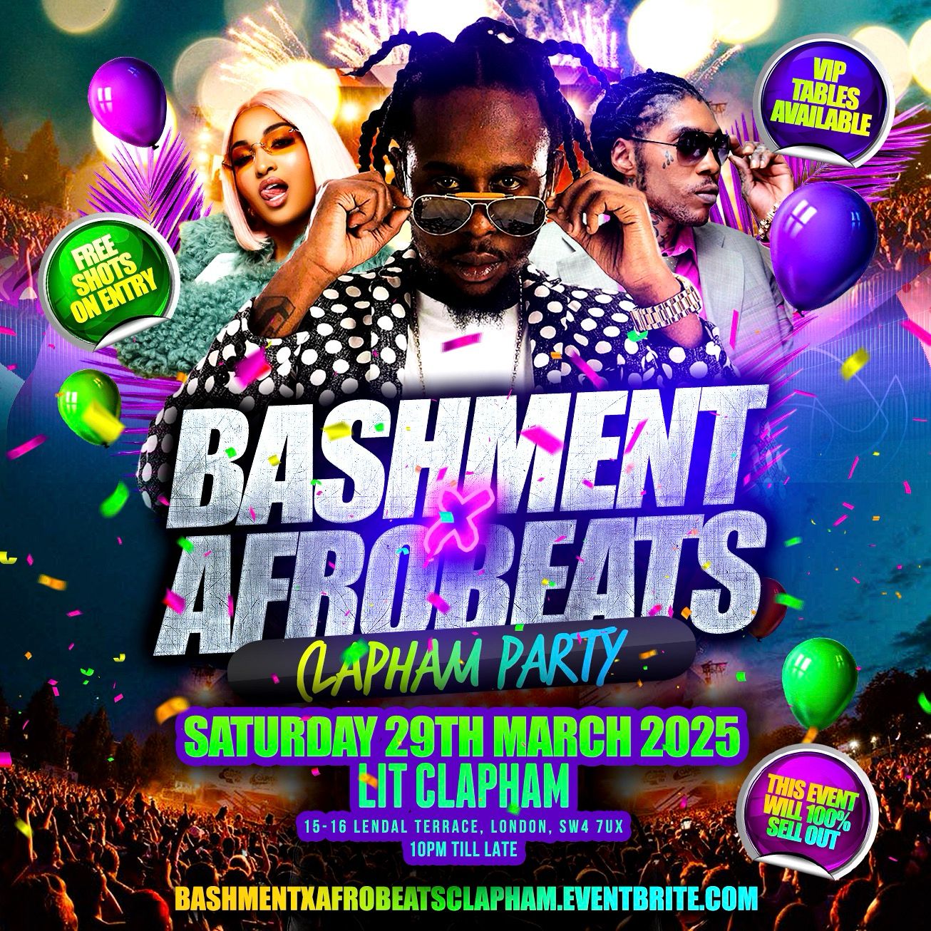 BASHMENT & AFROBEATS CLAPHAM CARNIVAL PARTY London’s Craziest Party Returns! Saturday 27th December 2025 Soul Lounge 76 Clapham High Street London SW4 7UL Music Policy: Bashment, Afro...