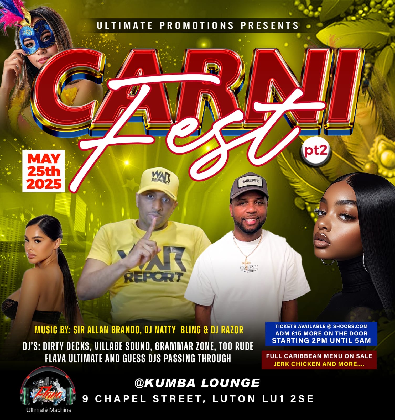 Ultimate promotions present Carnifest p2 @kumba lounge Luton a day and night party celebrating Luton Caribbean carnival 2025