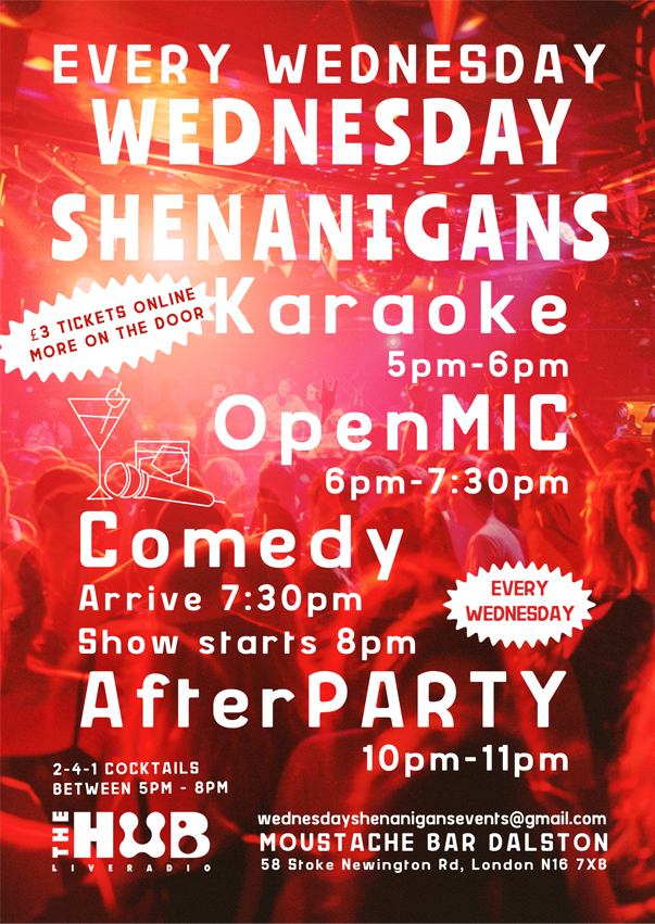 Join us every Wednesday at Moustache Bar Dalston