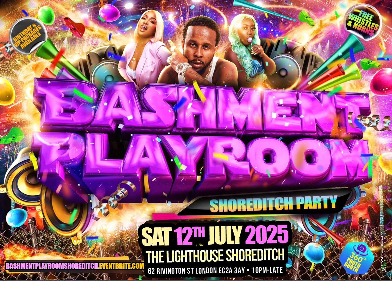 Bashment Playroom - Shoreditch Party. London’s Biggest Party Of The Year Saturday 27th December 2025 The Lighthouse Club 62 Rivington Street London EC2A 3AY Music Policy: Bashment, Afrobe...