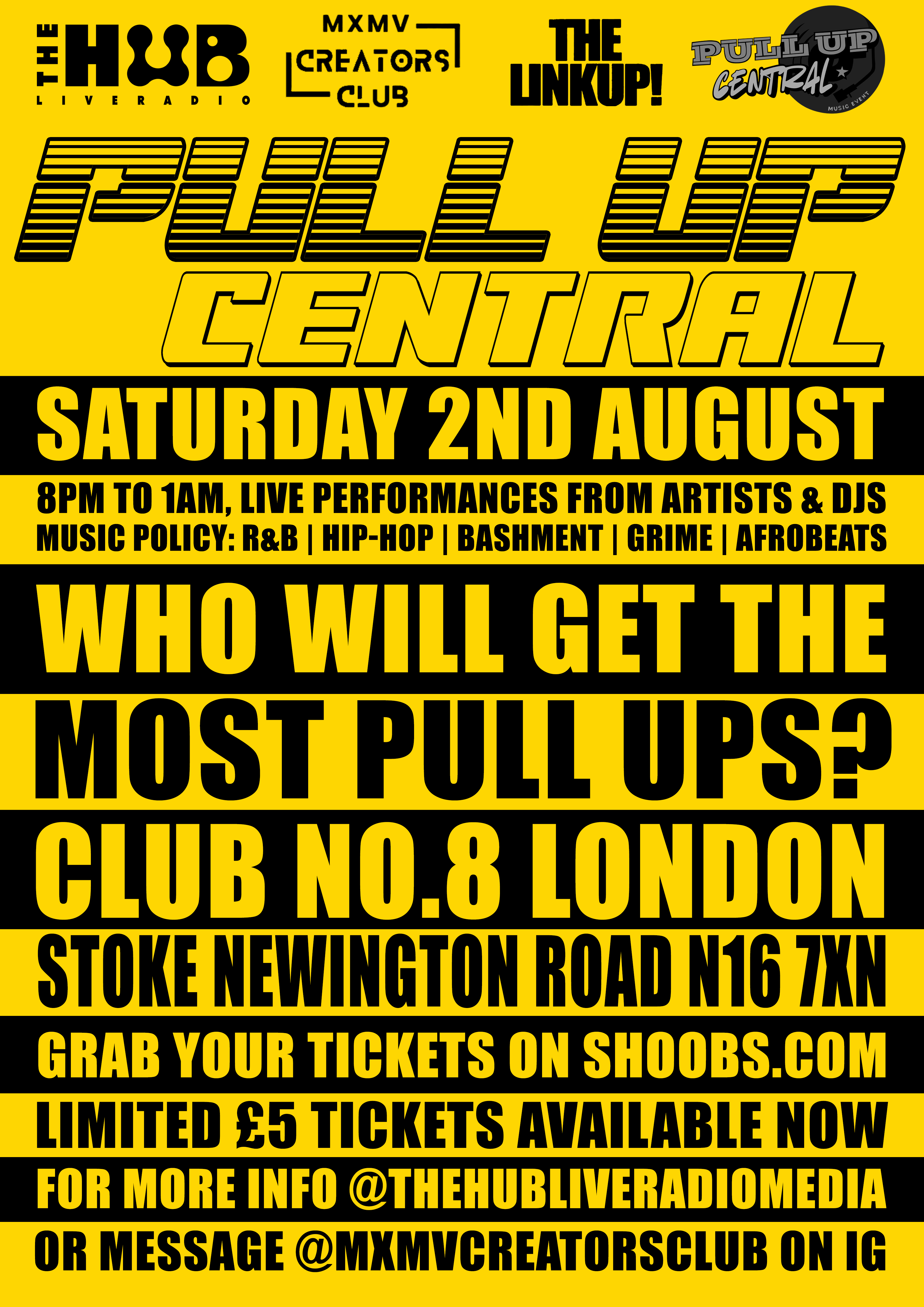 Pull Up Central hits Club No.8, Stoke Newington on Saturday August 2nd, 2025!