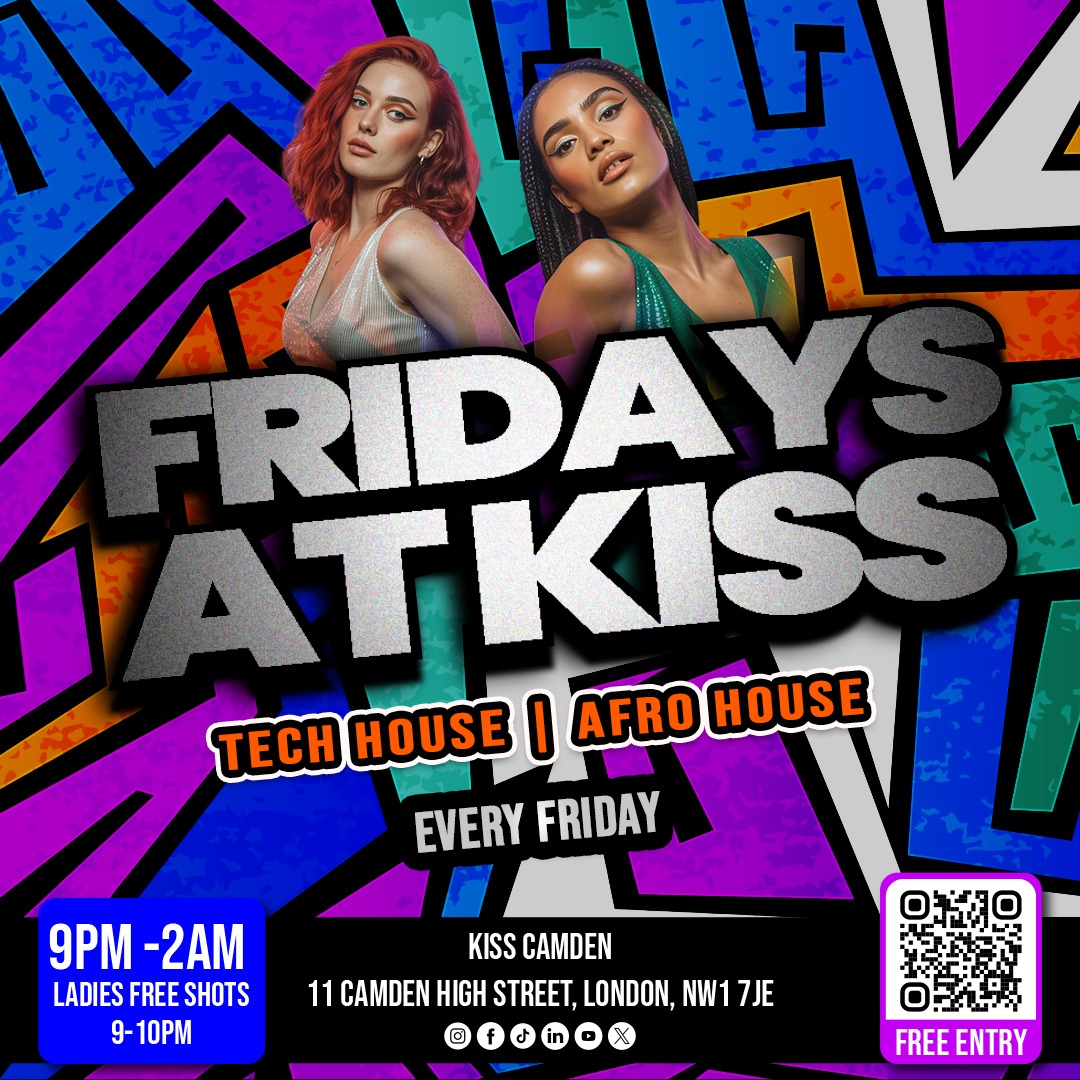 Turn up every Friday night at KISS Camden with the cityβs finest DJs spinning nonstop Tech House and Afro House. Itβs your weekly fix of underground energy, free shots, and serious vibes!
