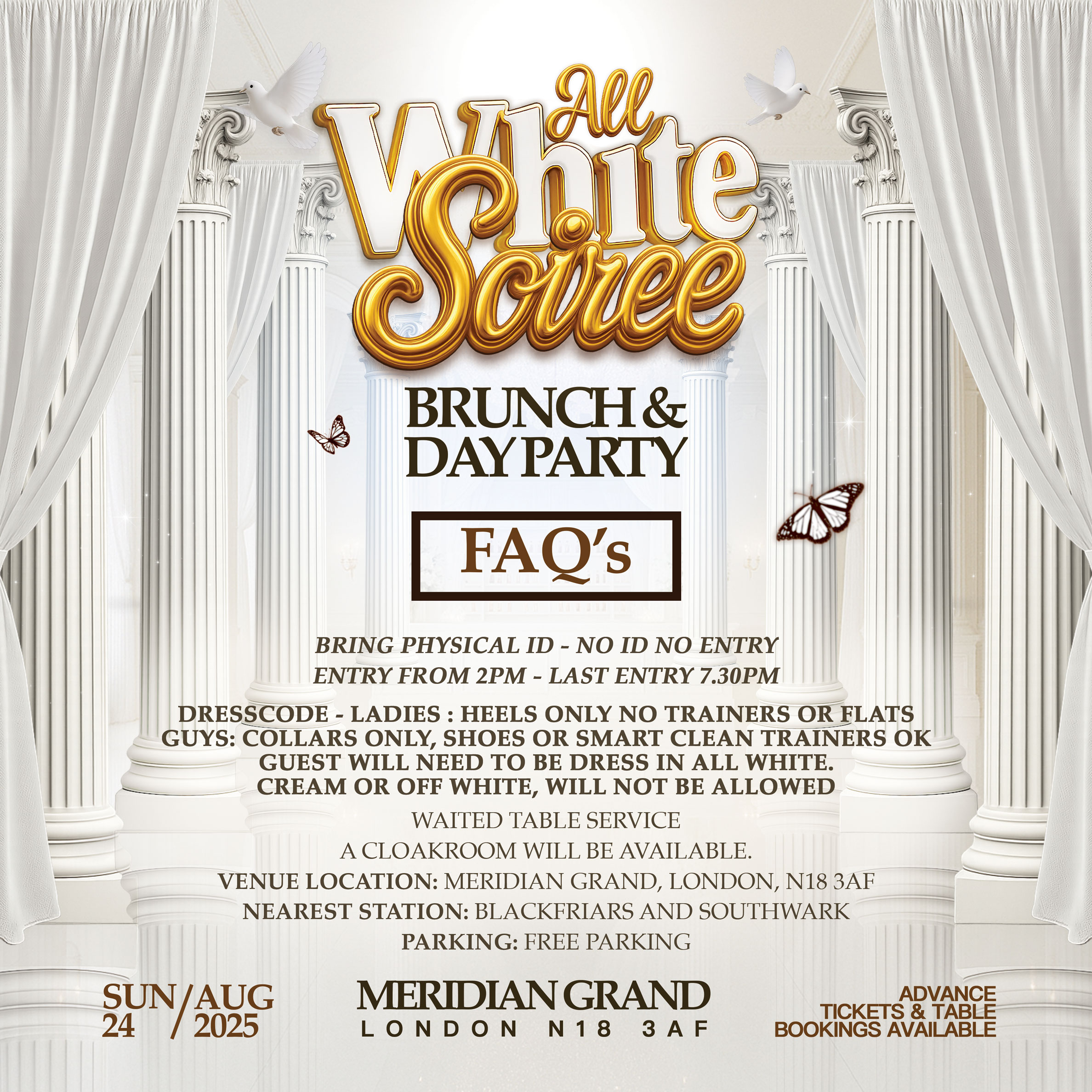This Summer August Bank Hoilday- Get ready to shine in your best **all white** outfit at our **summer day party**!