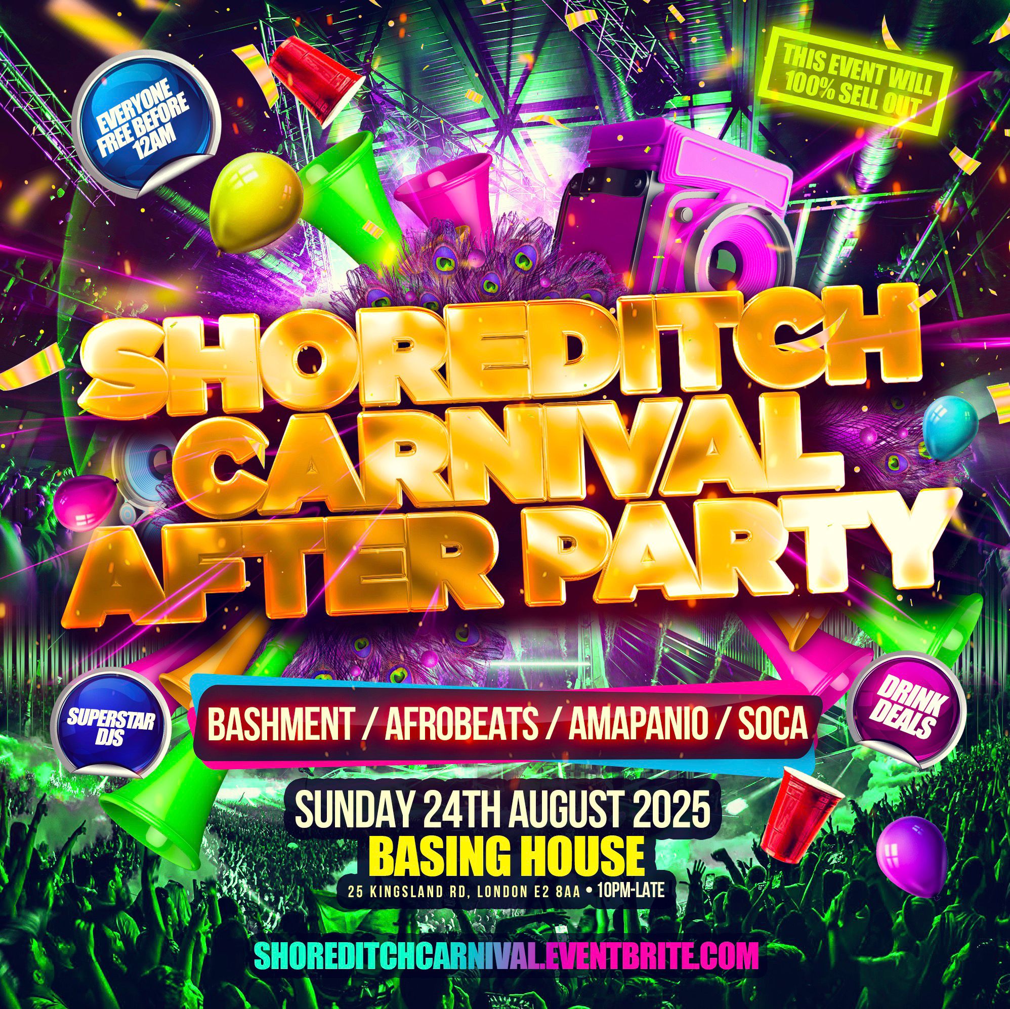 BASHMENT & AFROBEATS SHOREDITCHPARTY London’s Craziest Party Returns! Friday 12th December 2025 Music Policy: Bashment, Afrobeats, Dancehall, Soca, Hip Hop, RnB & More Attractions: ...