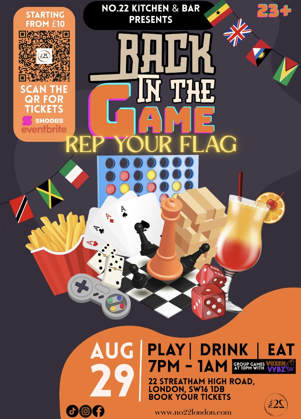 Join us for our monthly games night, on this Friday 29th August at No.22 Kitchen & Bar in Streatham.