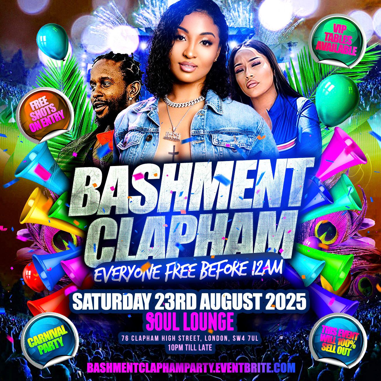 BASHMENT & AFROBEATS CLAPHAM CARNIVAL PARTY London’s Craziest Party Returns! Saturday 27th December 2025 Soul Lounge 76 Clapham High Street London SW4 7UL Music Policy: Bashment, Afro...