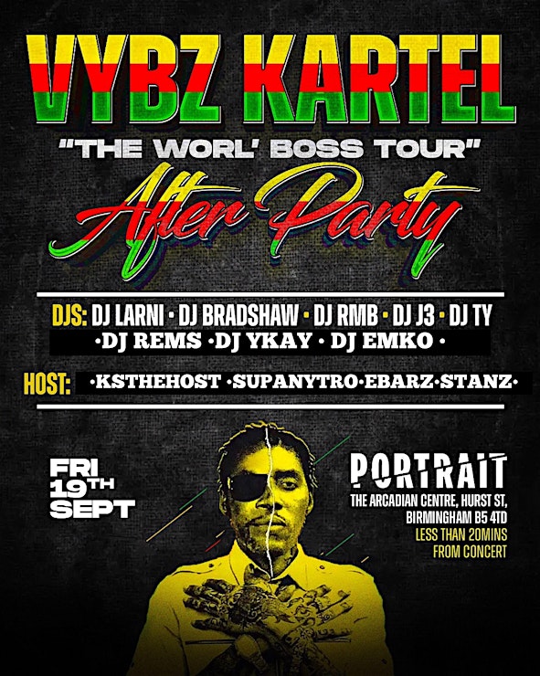 🔥 Birmingham, get ready! The energy doesn’t stop when the concert ends… it only gets bigger. Join us for the official after party for Vybz Kartel’s “The Worl’ Boss Tour” – a night dedicated to pure dancehall, bashment, and unforgettable vibes.