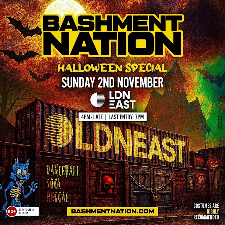 GET READY FOR THE BIGGEST XMAS BASHMENT PARTY EVER! 😈 BASHMENT NATION LDN EAST 4PM - 11PM Last Entry: 7PM Join 1000's of Dancehall, Reggae & Soca lovers for the ultimate Halloween ...