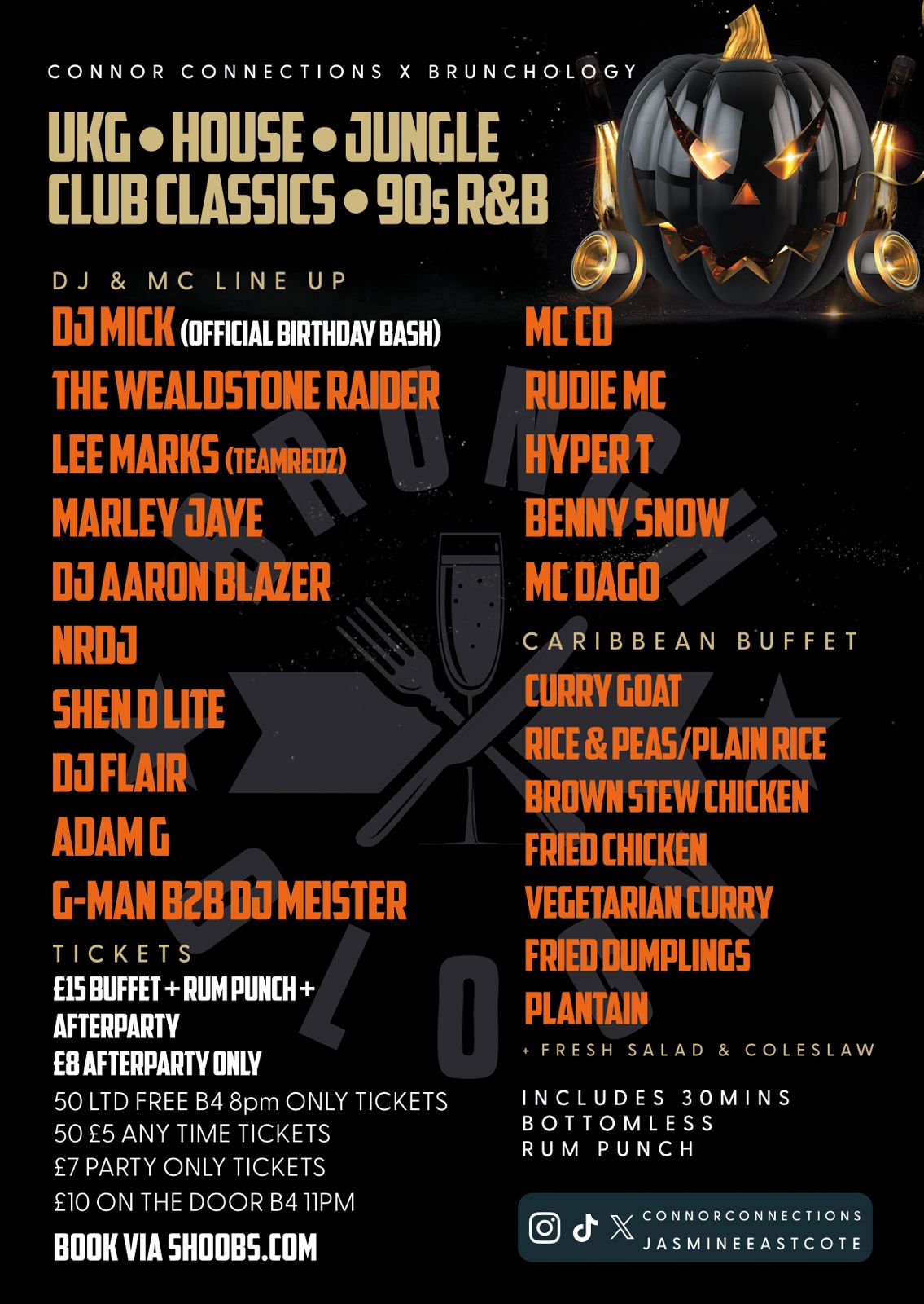 Get ready for a day party that blends the best of UKG, House, Jungle, Club Classics, and 90s R&B with a Caribbean buffet that’s pure soul food. This isn’t just a party—it’s a cultural celebration, a legacy in motion, and a brunch you won’t forget.