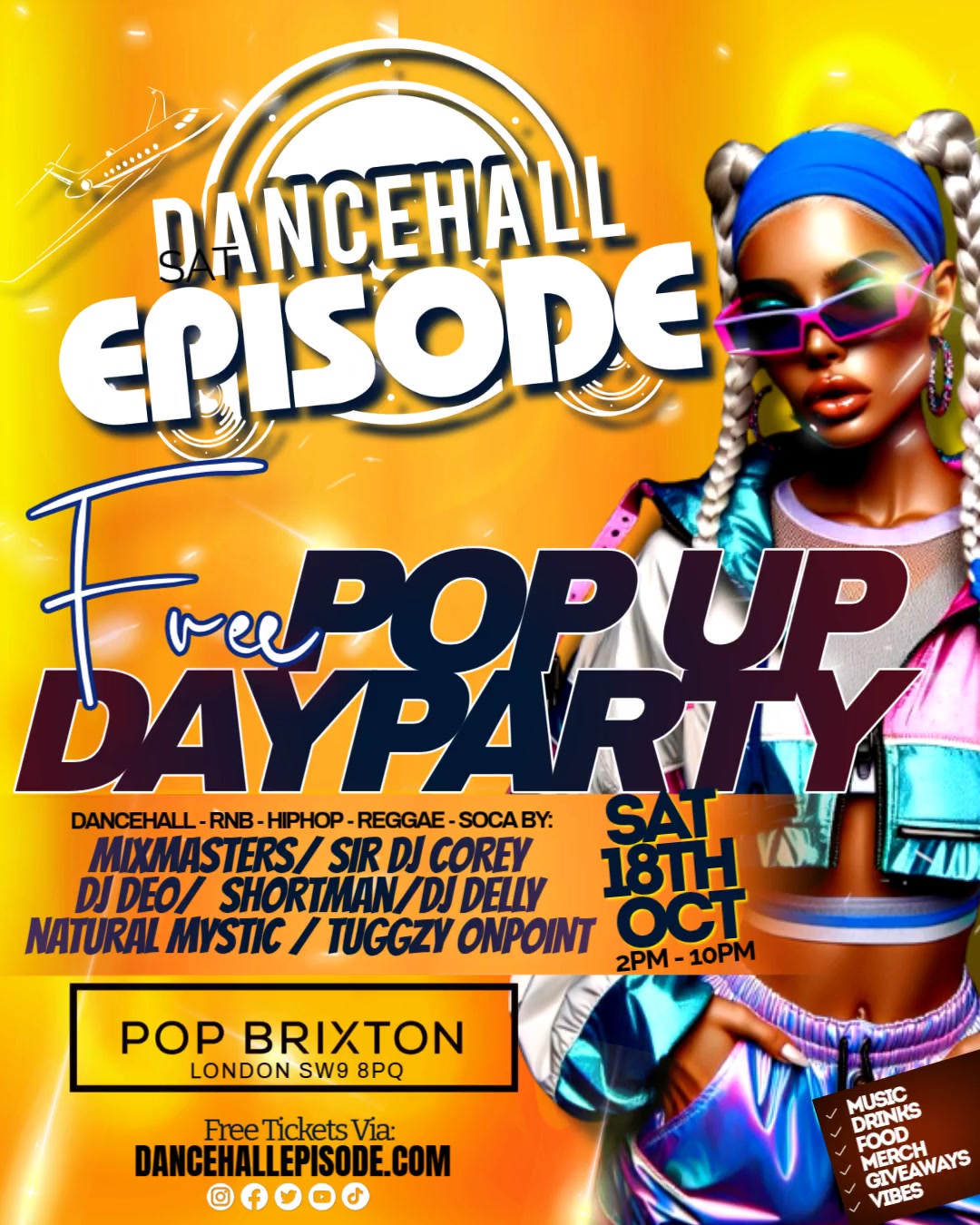 π Tag your crew & pull up for the biggest FREE day party in London! #DancehallEpisode #PopBrixtonVibes #DayPartyDoneRight