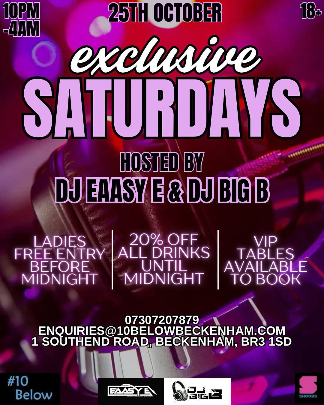 EXCLUSIVE SATURDAYS hosted by DJ EAASY E & DJ BIG B - Saturday 25TH OCTOBER🥳