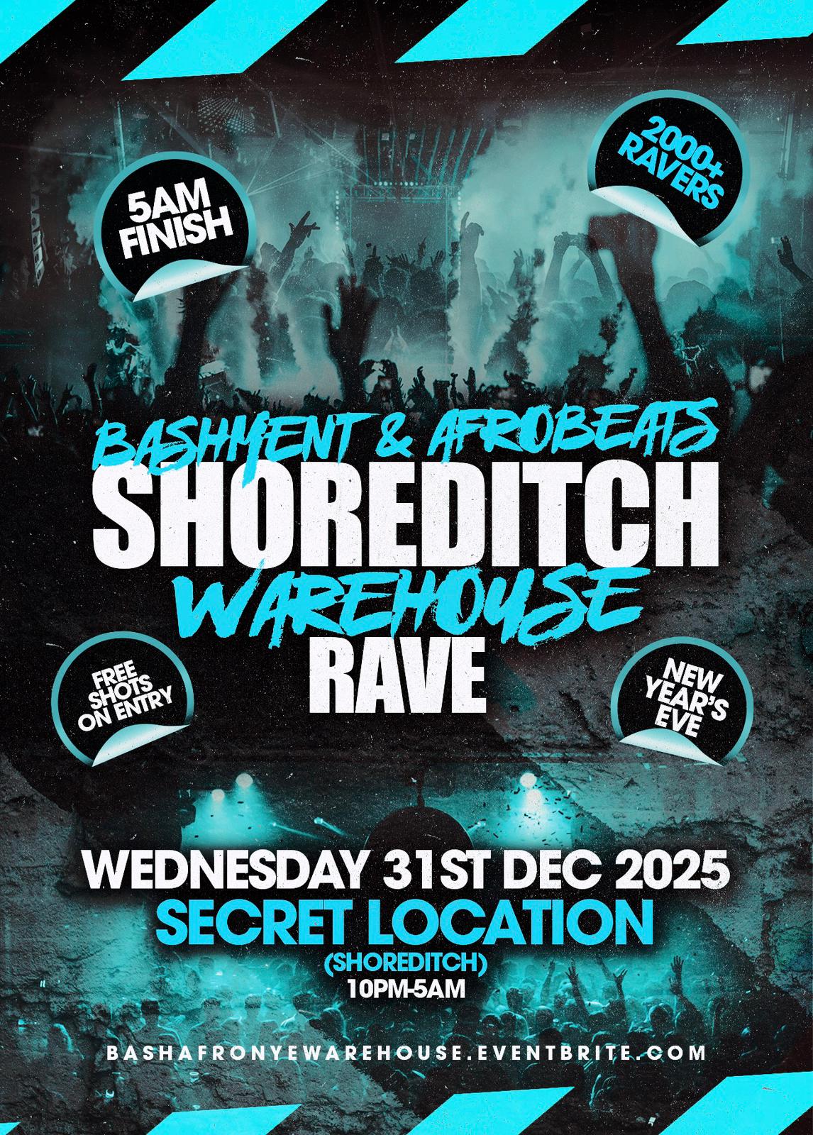 Shoreditch Bashment Warehouse Rave - New Years Eve Party. This event will 100% sell out! Wednesday 31st December 2025 | 8:00pm – Late Expect to hear the best in Bashment, Dancehall, Hip-Hop &...
