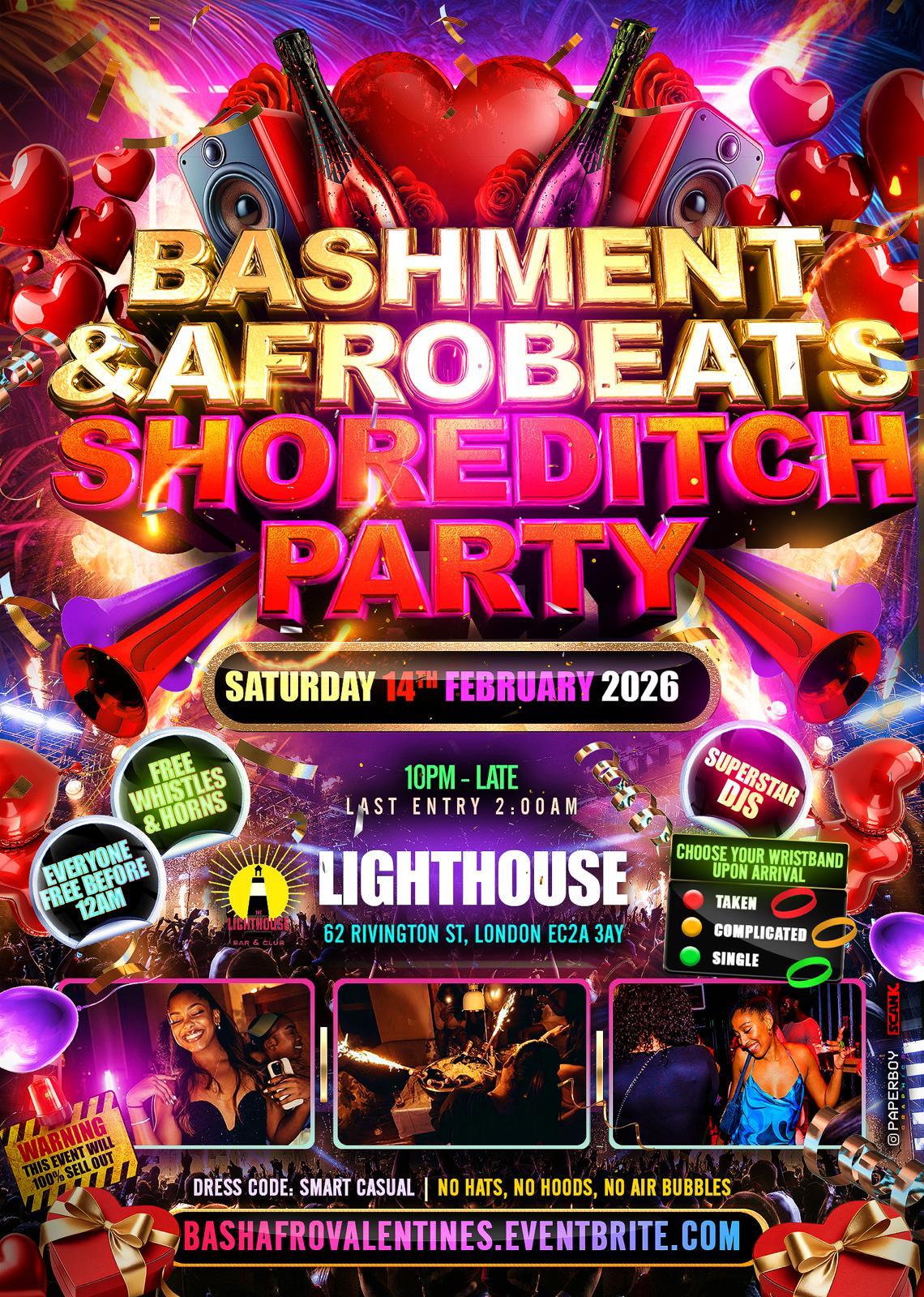 Bashment X Afrobeats - Shoreditch Party - Everyone Free Before 12AM Bashment X Afrobeats Like You Have Never Heard It Before! Saturday 24th January 2026 Music Policy: Bashment, Afrobeats, Dan...