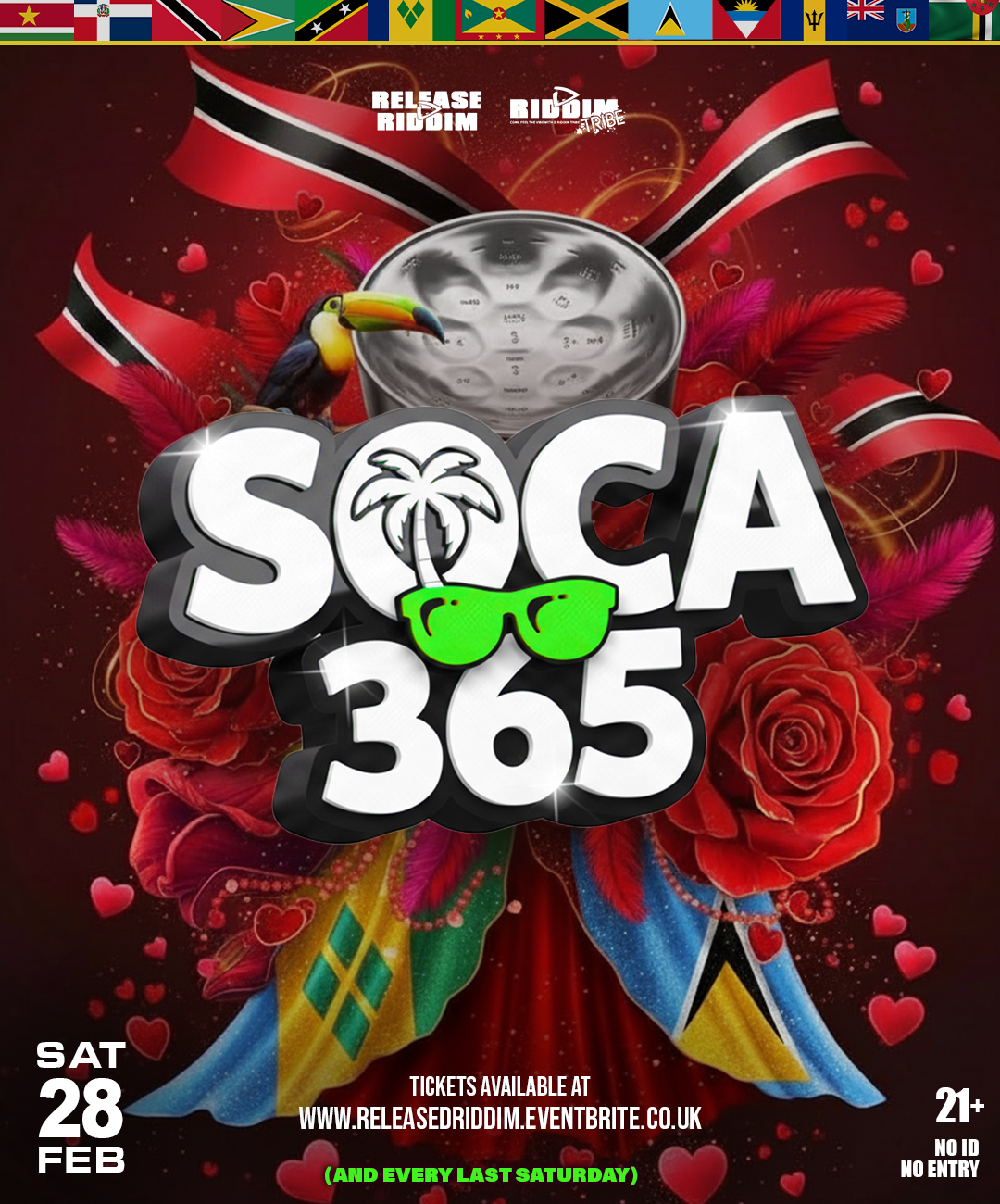 100% Soca New and Old from all islands! Focusing on 3 Islands each month with real vibes!
