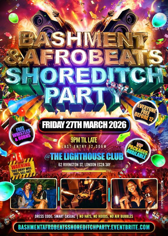 BASHMENT & AFROBEATS SHOREDITCHPARTY London’s Craziest Party Returns! Friday 27th February 2026 Music Policy: Bashment, Afrobeats, Dancehall, Soca, Hip Hop, RnB & More Attractions: ...
