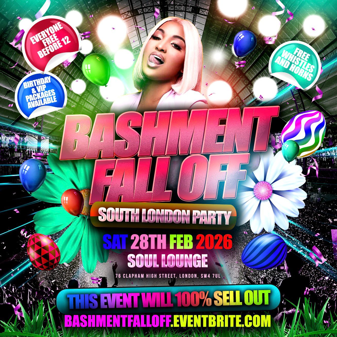 Bashment Fall Off - Everyone Free Before 12AM London’s Biggest Bashment Party Returns Saturday 28th March 2026 @ Soul Lounge, London Music Policy: Bashment, Afrobeats, Dancehall, Soca, Hip H...