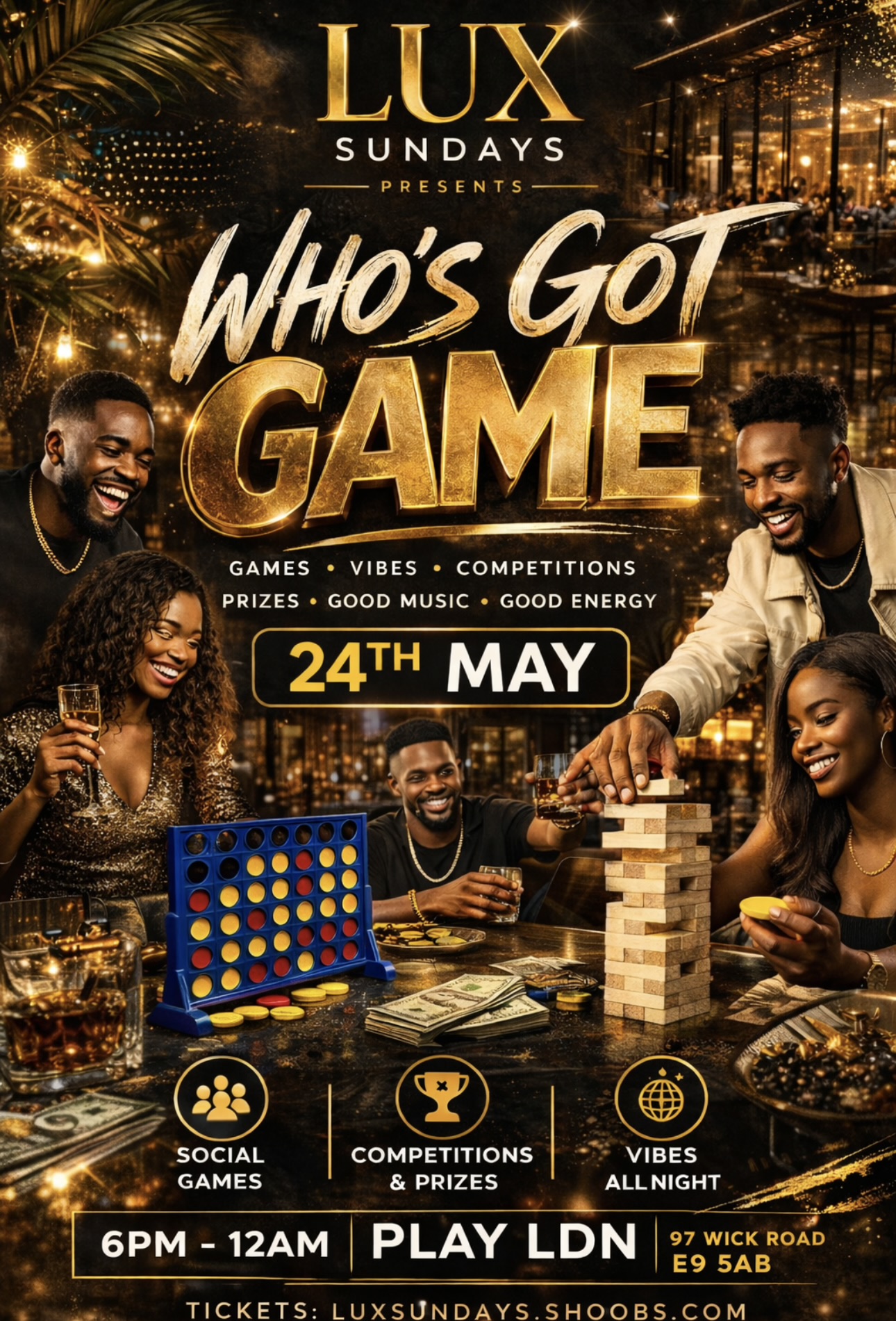 Get ready for the ultimate Sunday vibe at Lux Sundays Presents: Who’s Got Game? — where games, music, and good energy collide.