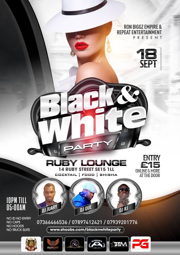 Ruby Lounge Saturdays - Black & White Party | Shoobs