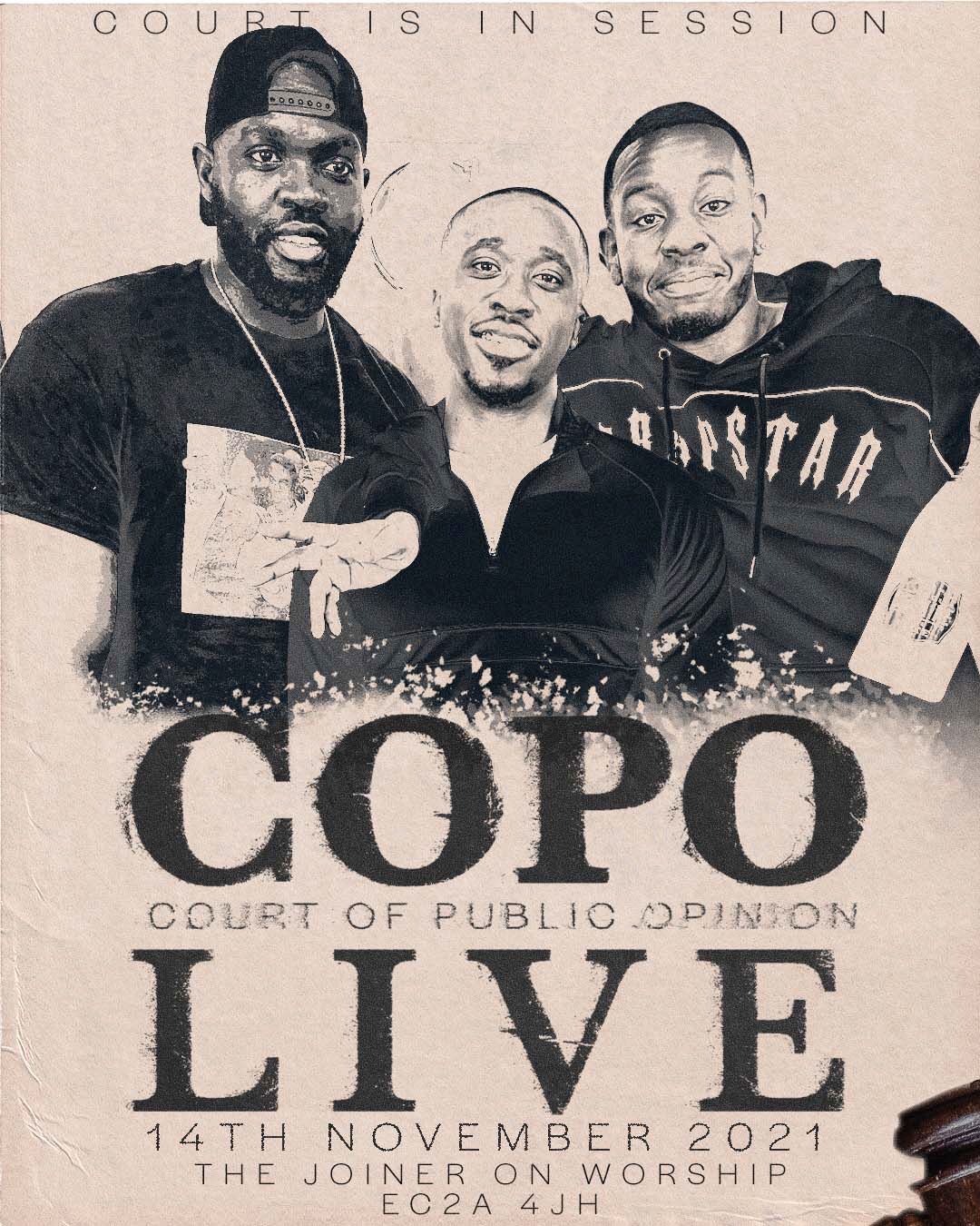 That's right jury the COPO podcast is coming to you live, at The Joiner Worship Shoreditch on the 14th November 2021.