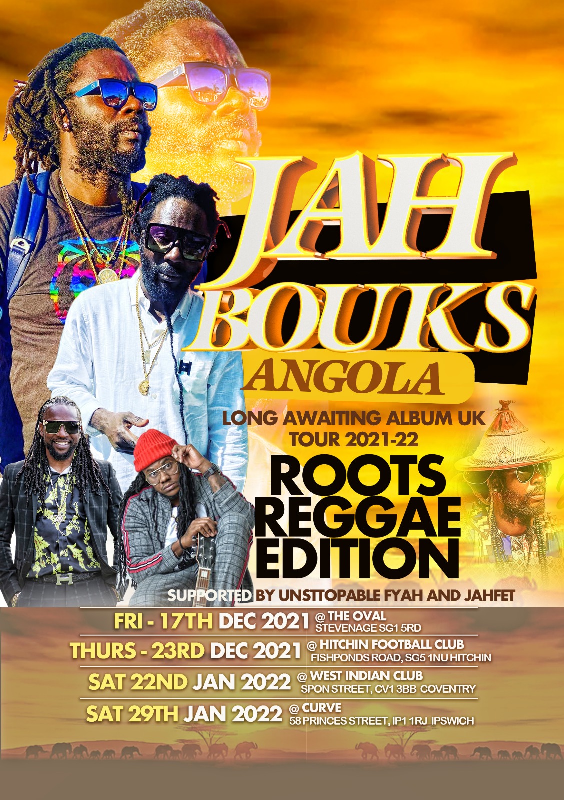 CALLING ALL ROOTS REGGAE/DANCEHALL LOVERS - REGGAE'S GREAT PROMISE The MYSTIC Man JAH BOUKS ( ANGOLA).... Haile. Yes Rasta.. As I would say! JAH BOUKS’ work is of a higher calling of consciousness and continues both on and off stage with youth empowerment, juvenile rehabilitation, and community development. Following a string of singles, JAH BOUKS struck gold with his self-penned 2013 mega-hit “Call Angola.” JAH BOUKS’ music has taken him into youth empowerment and community renewal. He pairs his roots reggae sound with reggae righteousness and conscious lyrics. In 2020, after watching a world in flames, JAH BOUKS decided to pour his meditation and efforts into creating an album, and the genesis of “Long Awaiting” was born. The 12-track album ranges from love songs to social criticism to the need for a spiritual connection with nature and God. The opening track “One Hit Wanda” is an apparent jab at those who considered JAH BOUKS just that, a one-hit-wonder. JAH BOUKS will be supported on this UK ALBUM TOUR BY UNSTOPPABLE FYAH , JAHFET AND SISTA HERTIAGE MUSIC BY FADA RIBS AND UNITY SOUND.