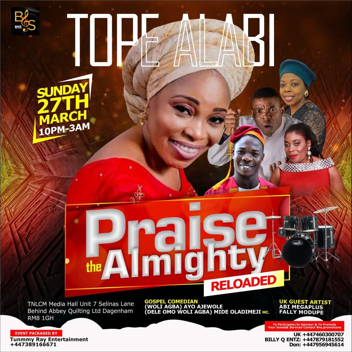 PRAISE THE ALMIGHTY WITH TOPE ALABI HAS BEEN POSTPONED