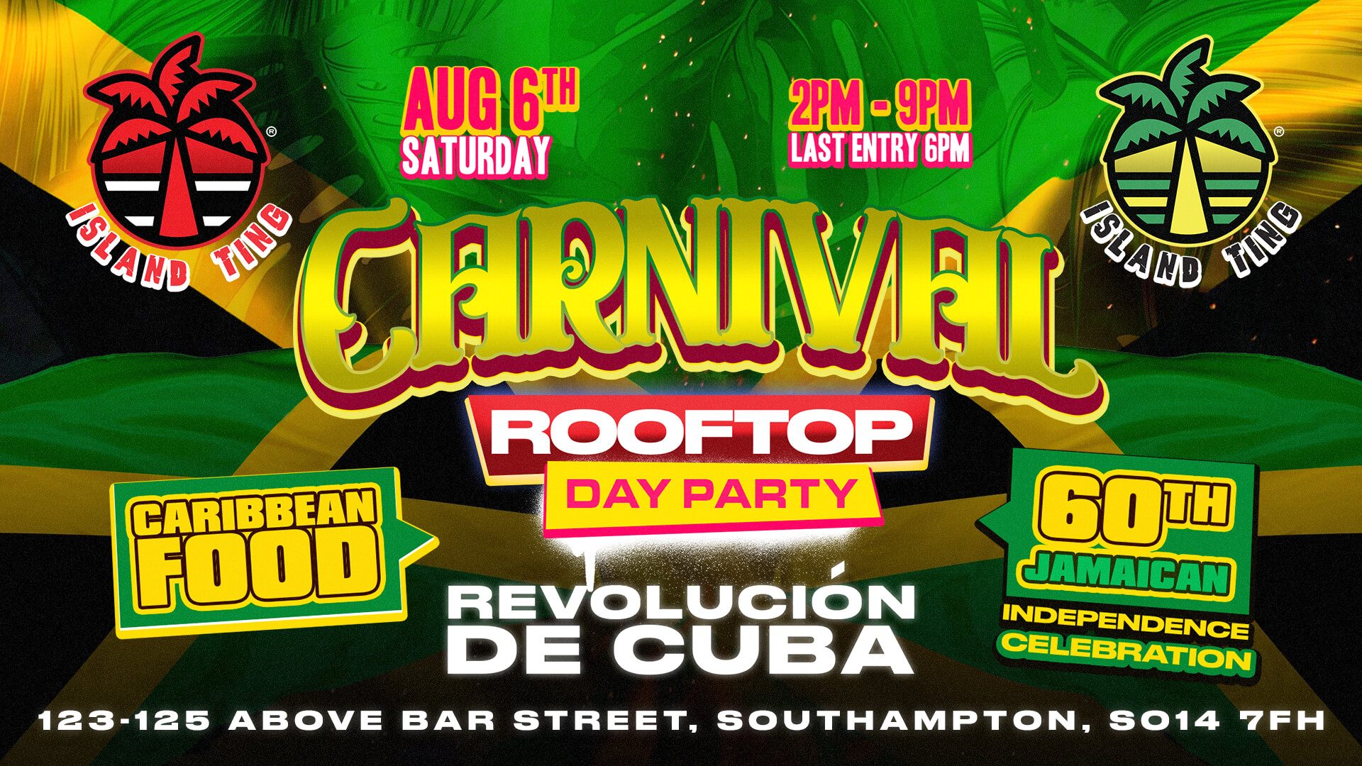 The South Coast's #1 African & Caribbean Party returns to Southampton for an exclusive carnival Rooftop party! Celebrating Jamaica's 60th Independence! A Party not to be missed! π΄
