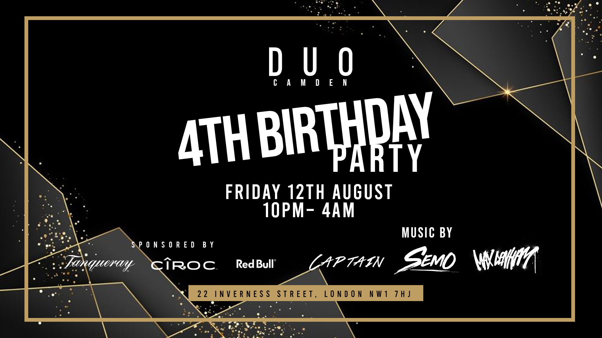 DUO is the hidden Gem in Camden renowned for its amazing celebrity & DJ line up . The music is always a plus in the venue mixing the sounds of RNB, HIP Hop, House, Old stool and UKG. We have a range of VIP Tables available to choose from and Birthday Celebration packages suitable for small to large groups.