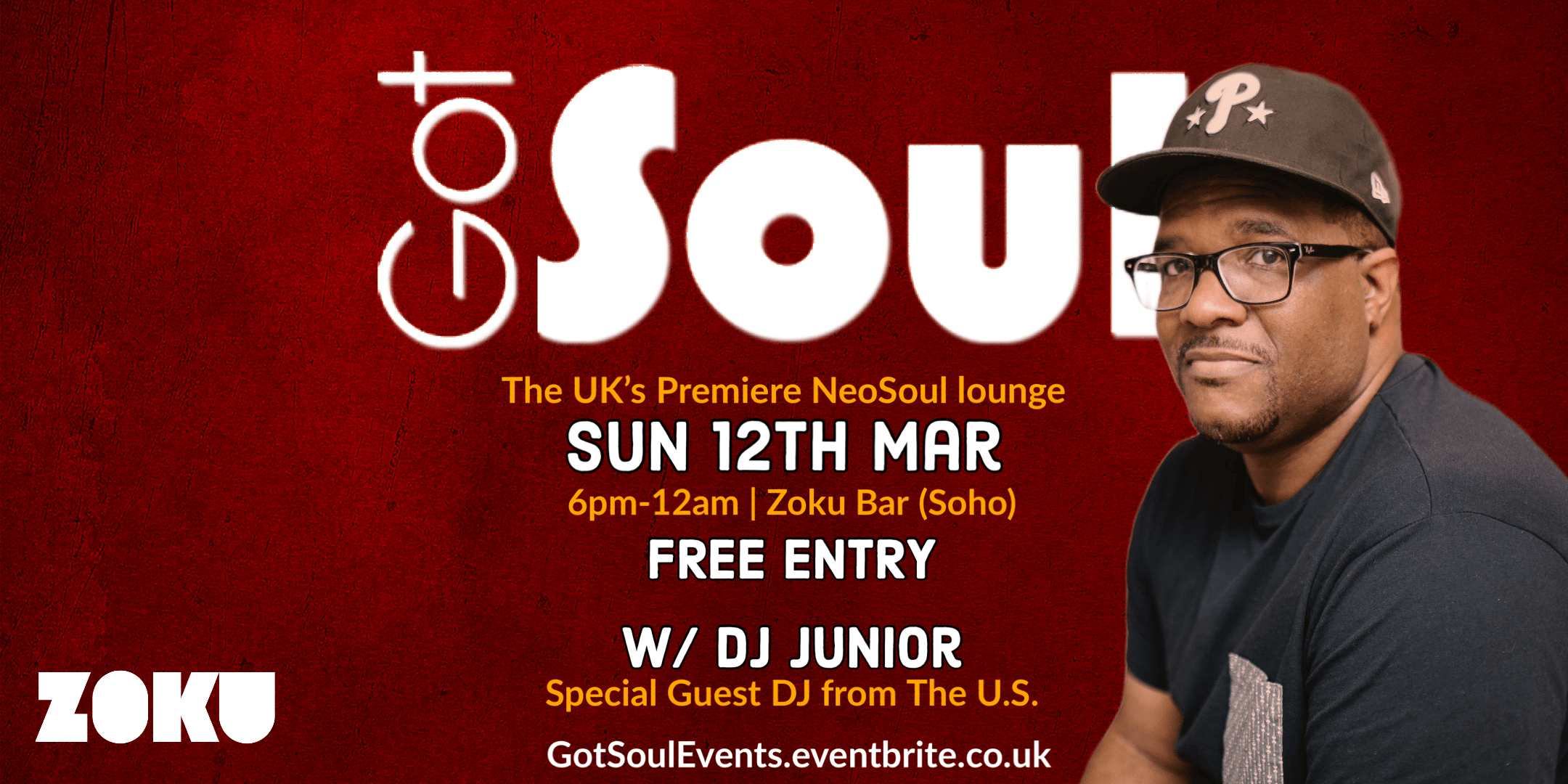 Got Soul Sundays (DJ Junior - U.S. Guest DJ) Sun 12th March @ Zoku