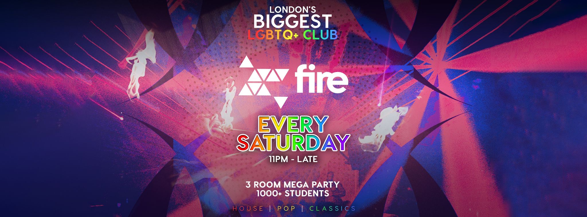 London’s hottest LGBTQIA+ 3 room mega party is here! Join us every Saturday at London superclub Fire with 1000 LQBTQ people, students and allies!