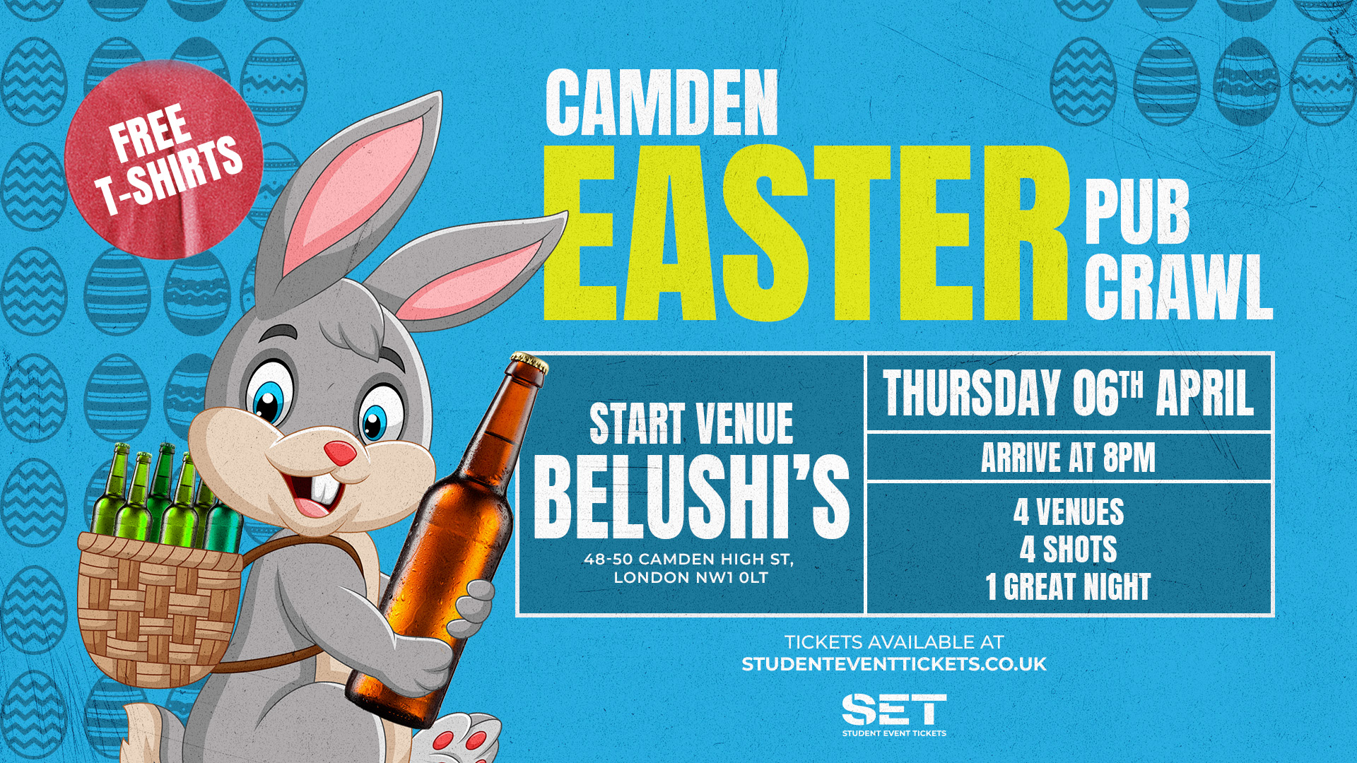 With a group of up to 150 people per crawl, you will be carefully guided through Camden's best spots that will contain a shot left in every venue to ensure that everyone is in the true Easter spirit, not to forget a selection of drink deals in each venue!