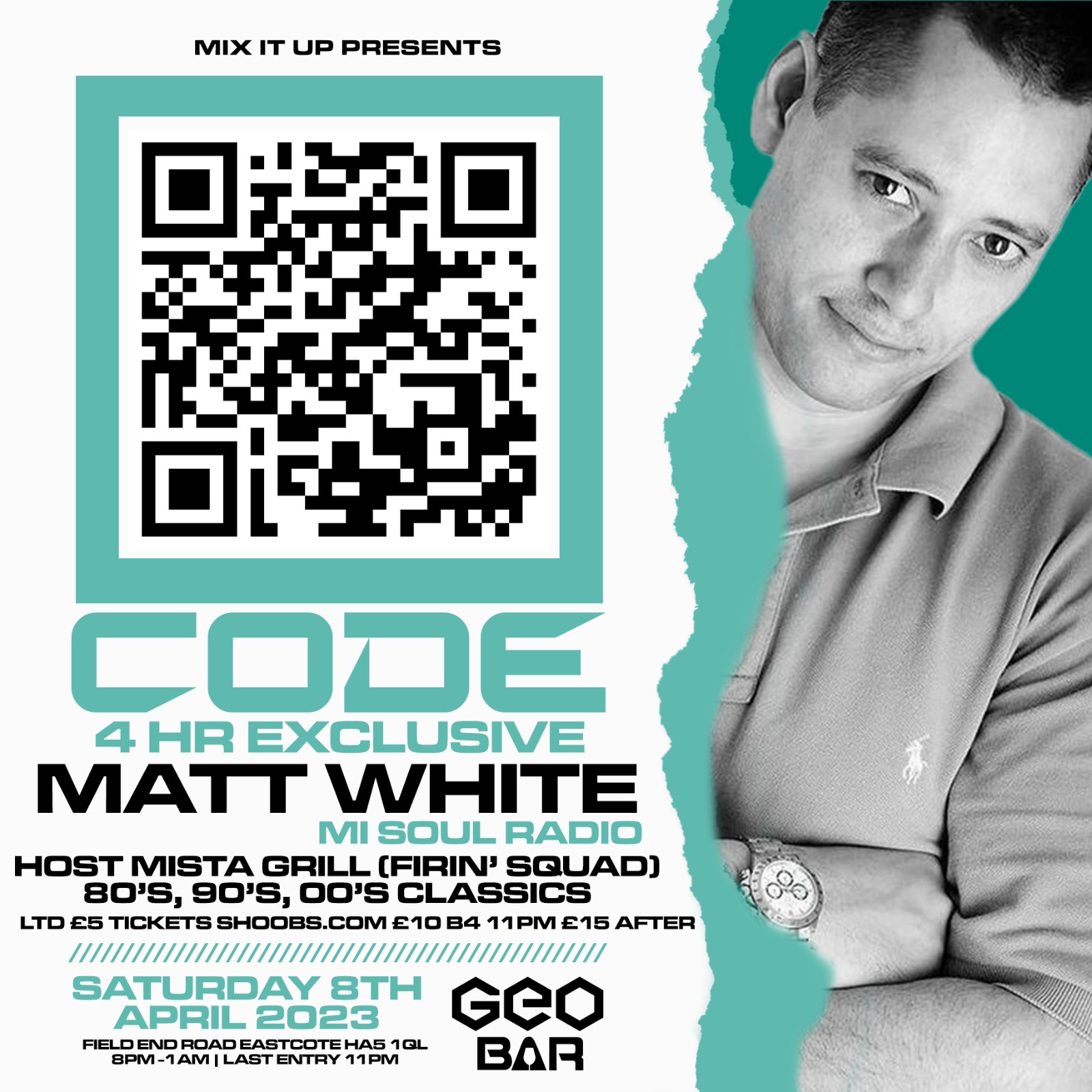 Catch A Groove founder and resident DJ Matt White plays his first ever solo party. After decades of creating and spinning at legendary clubs like Catch A Groove, Smoove (Ministry Of Sound) , Bubbling Over (Bar Rumba), Twice As Nice, Fresh & Funky (Hanover Grand) and many more Matt White will play his first ever solo party at on Sat 8th April. Known for his incredibly smooth mixes and impeccable choice in music that spans everything from R&B, Rap, Jungle, UKG and Reggae, expect 4 hours of big tunes and good vibes hosted by the energy god Mista Grill of Firin’ Squad. Limited £5 tickets available, more on the door.
