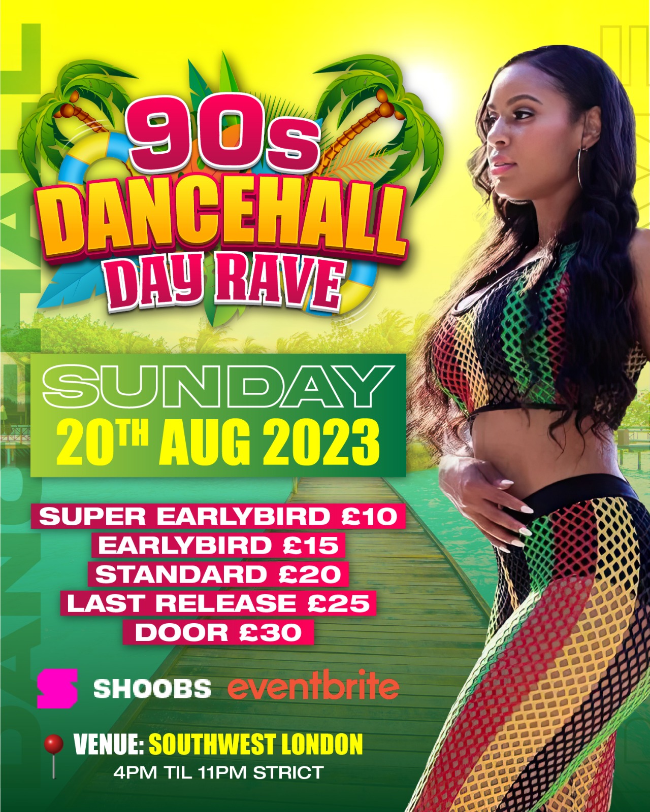 Music policy: 90s Dancehall, a touch of new school dancehall, 90s RnB, 90s Hiphop, Afrobeats, Party Classics, Soca, Slow Jams, Amapiano, Funky House, Party Classics, UK Garage