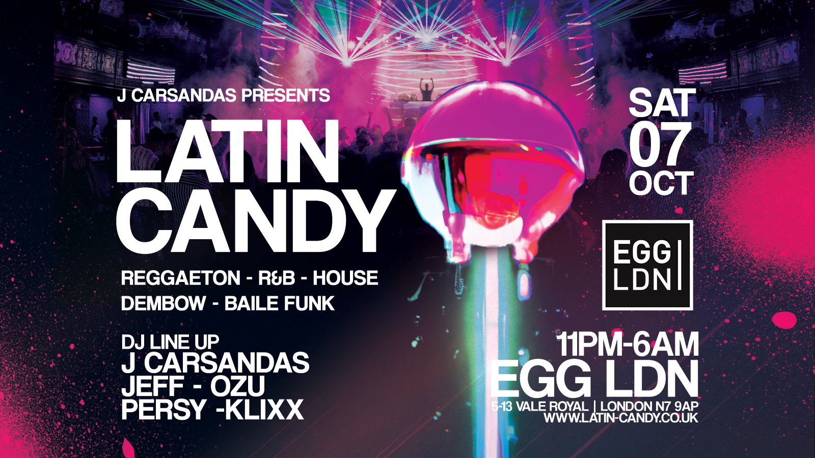Get ready to ignite the dance floor with the ultimate Latin fusion party - "Latin Candy"! Returning stronger and sweeter than ever, this legendary event is set to take over the world-famous nightclub, Egg London, for a night of electrifying rhythms and infectious beats that will keep you moving all night long.