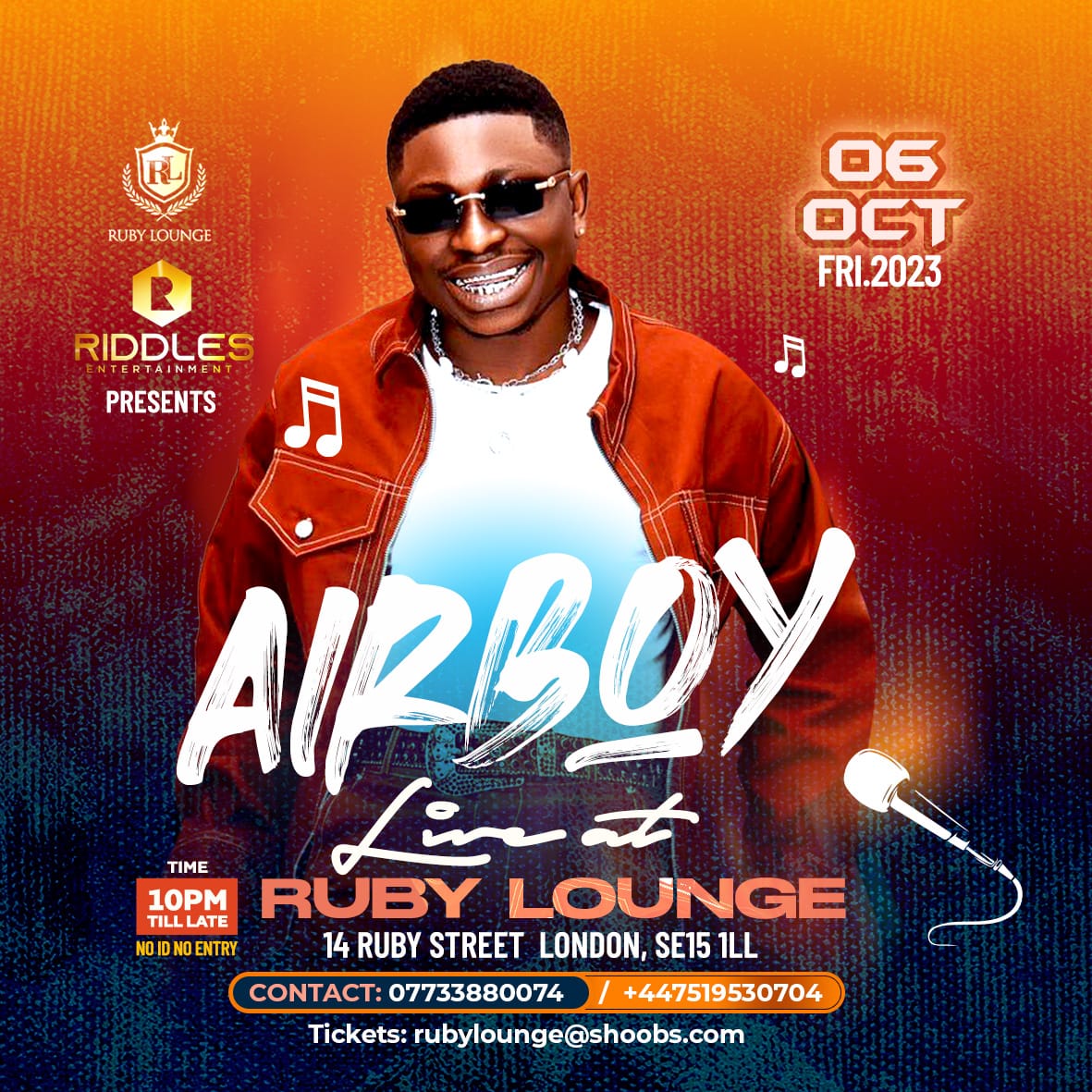 Ruby Lounge - Afrobeats Vs Bashment - AirBoy Performes live | Shoobs