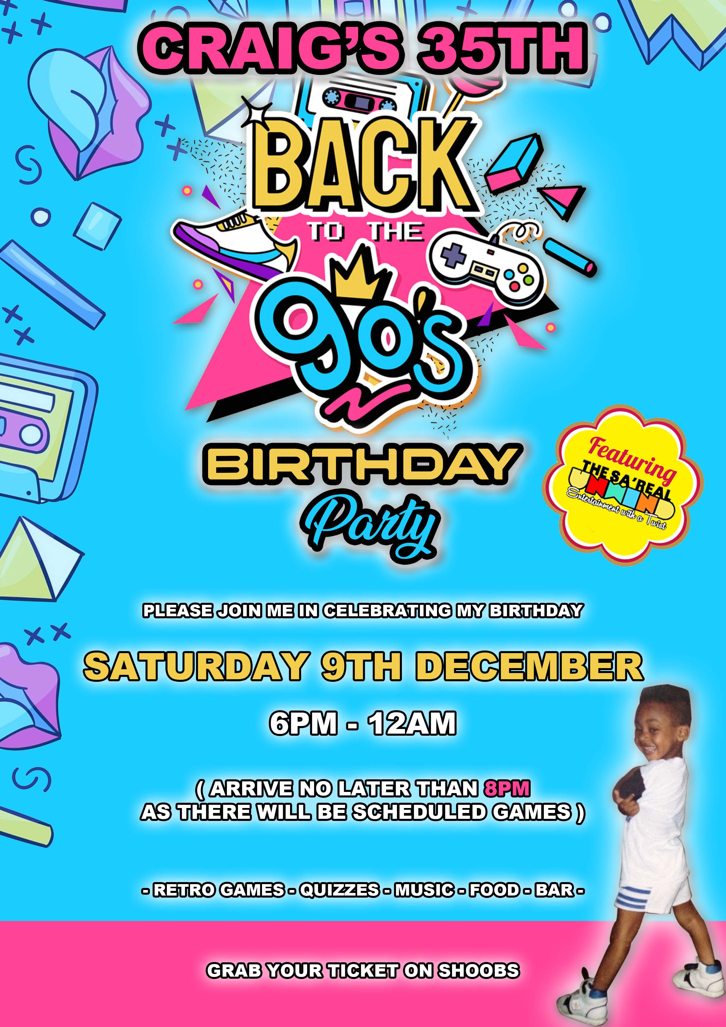 Join me in celebrating my 35th Birthday hosted by The Sa'Real Unwind Team. Plenty of retro console, board games and more