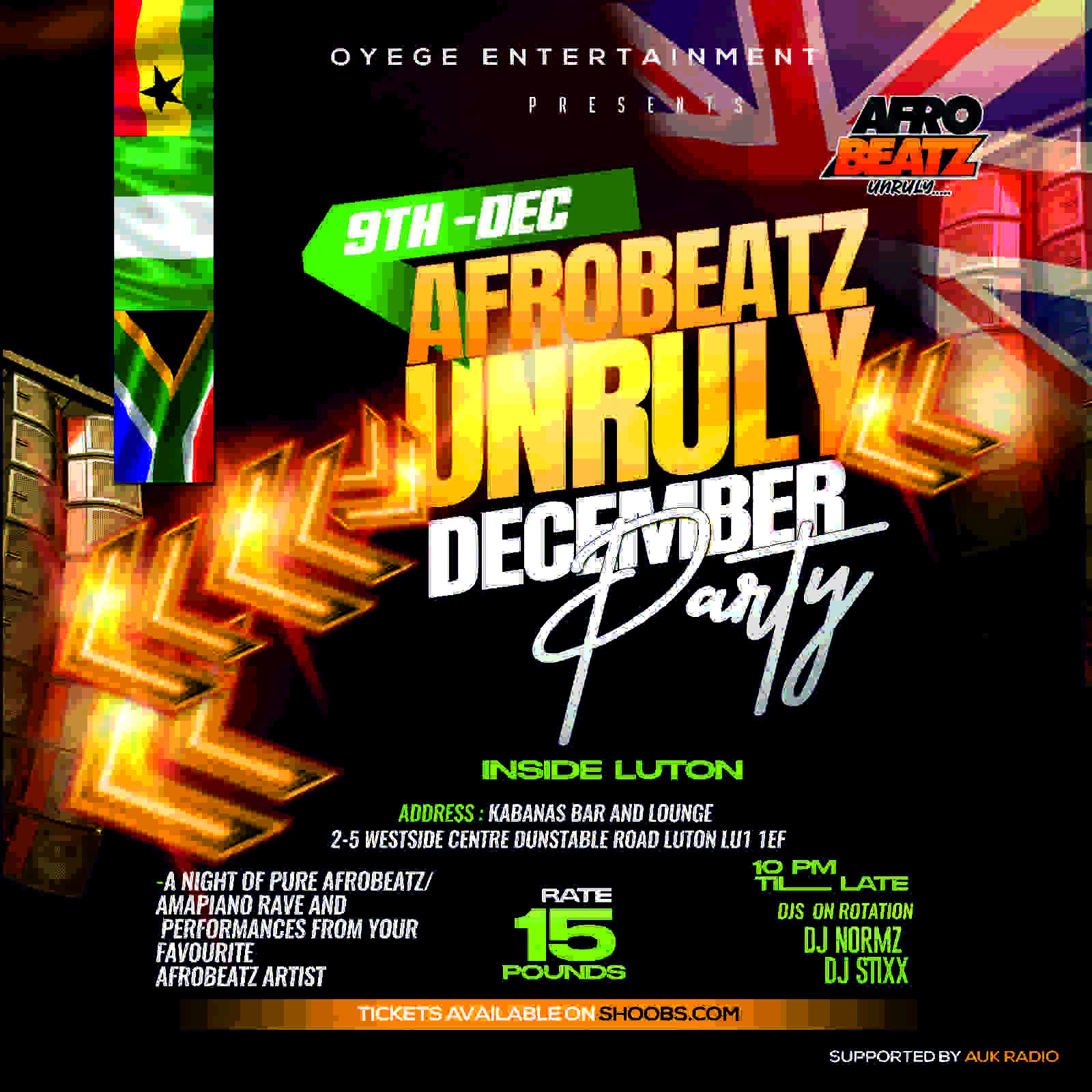 A night of pure Afrobeatz/Amapiano Rave and performances from your favourite Afrobeatz Artist
