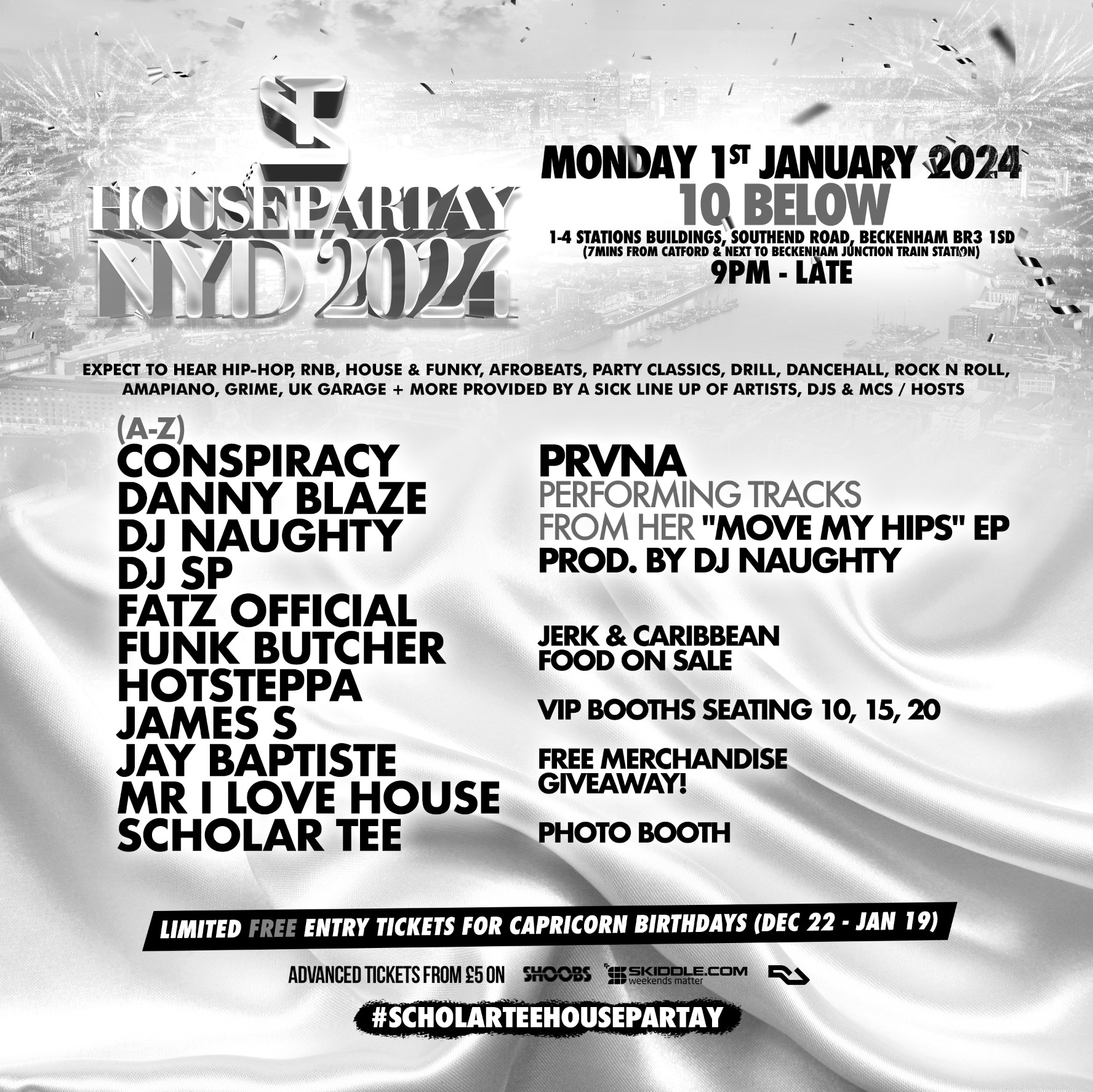 โ Limited ๐๐ฅ๐๐ entry tickets for Capricorn birthdays (December 22 - January 19) โ