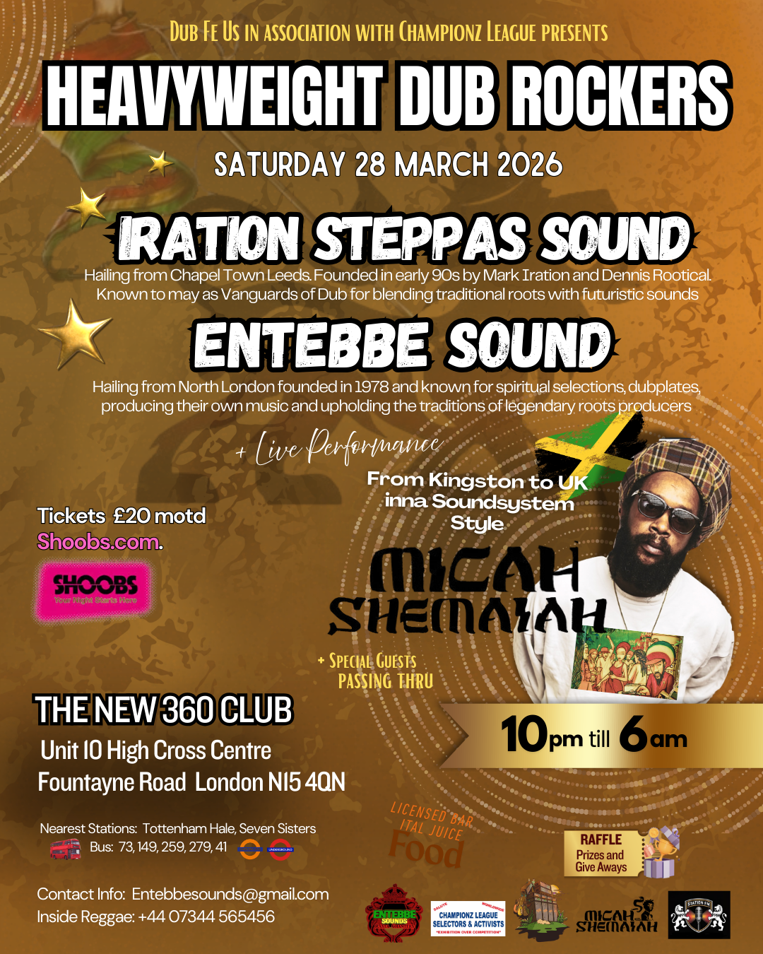 Fancy a Ear-gazum..? This Roots Reggae Dub night is sure to satisfy. 2 Heavyweight legends of roots reggae dub soundsystems bring the Bass plus a live performance from Kingston Dub Club's Micah Shem...